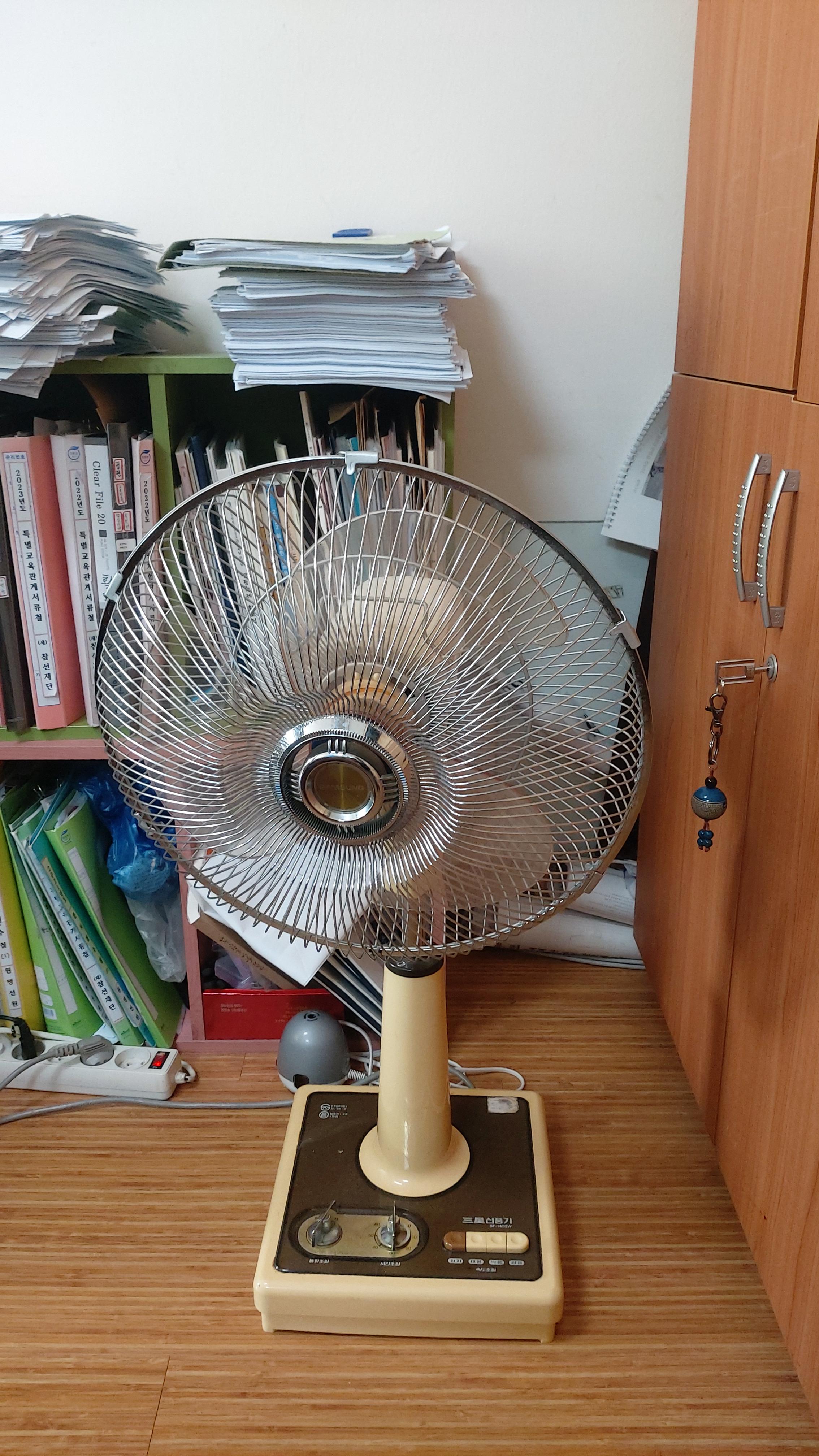 40년 됐답니다. 그런데 우리 집에 있는 선풍기보다 더 깨끗하고 작동도 이상없이 잘됩니다. 바람도 지금의 떱떱한 바람이 아니라 40년전 신선한 바람이 불어 오는 것 같습니다.